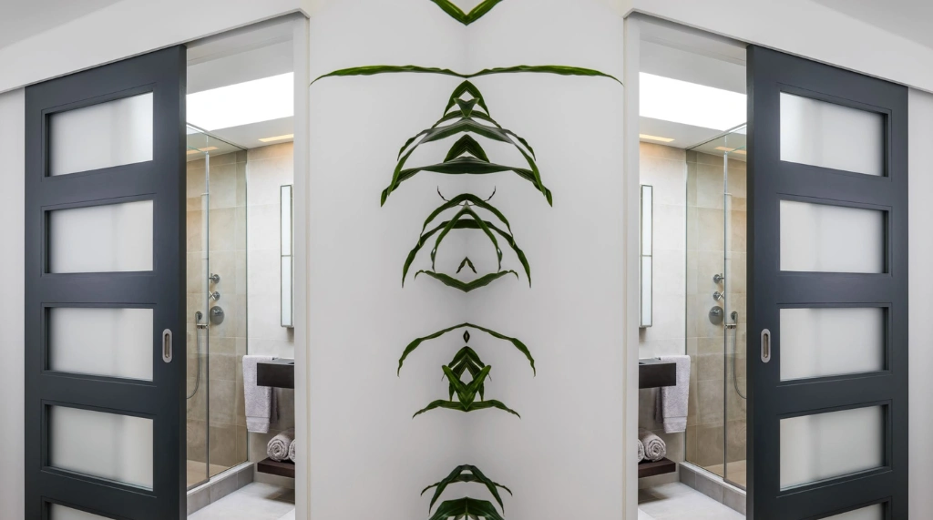Desain geser ini menjadi solusi cerdas hemat ruang bagi hunian minimalis di Indonesia, memberikan kesan luas sekaligus menjadi sekat estetis yang memisahkan area kamar mandi dengan ruang utama secara seamless.