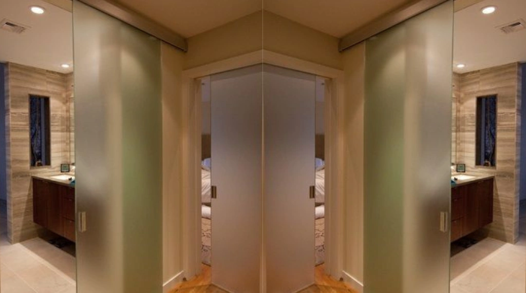 4. Pintu Kamar Mandi Sliding Kaca Frosted Frameless nan Modern